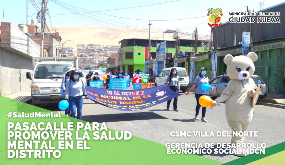 El centro de Salud Mental Comunitario Villa del Norte, en coordinación con la Gerencia de Desarrollo Económico Social de la MDCN, y con apoyo de serenazgo, realizo un colorido pasacalle, recorriendo las principales calles de nuestro distrito.