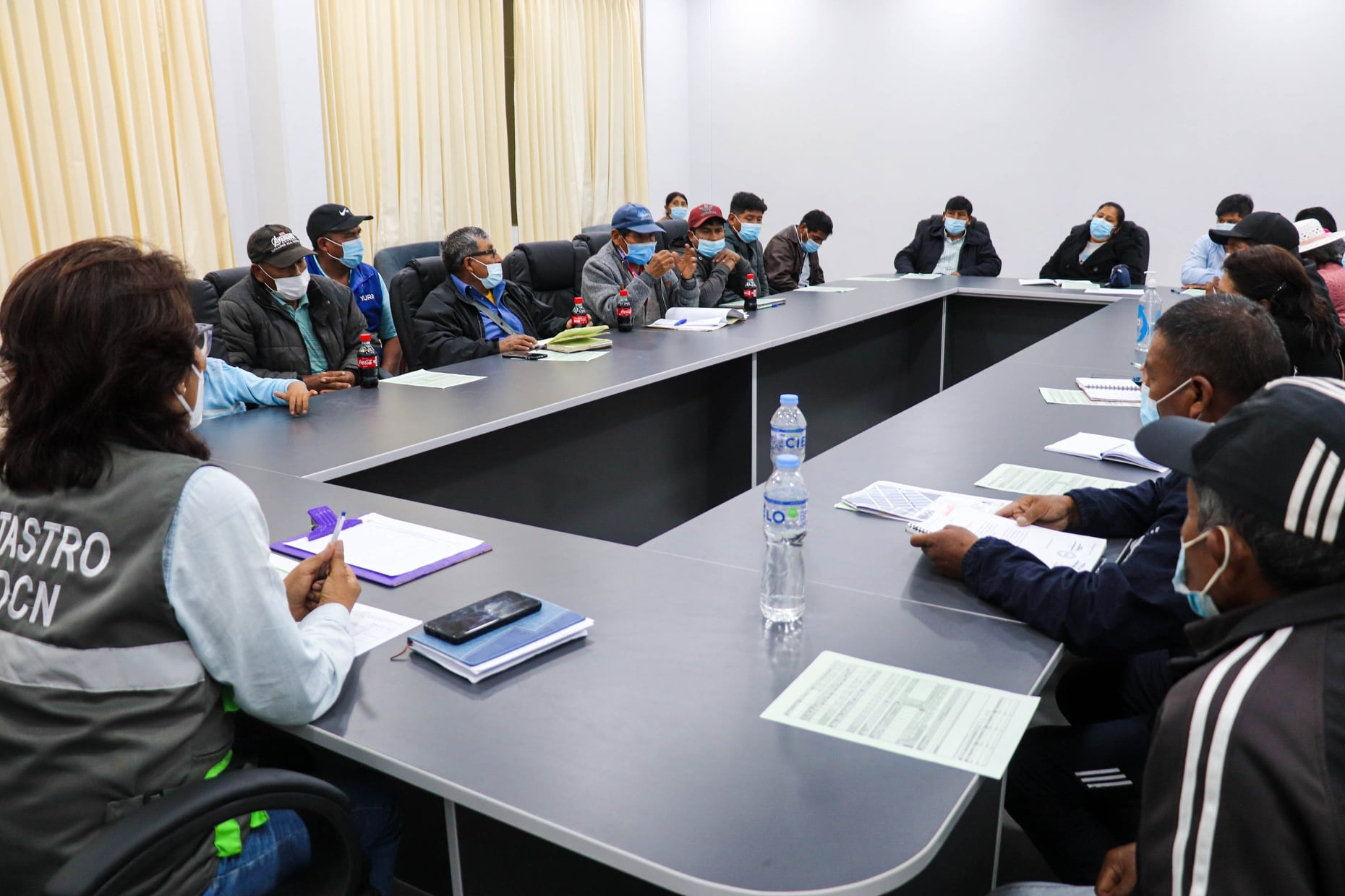 Con el fin de dar a conocer el trabajo de actualización catastral que se ha iniciado en el distrito, el equipo funcional de Catastro precedido por la Ing. Eliana Nancy Chambilla Velo y dirigentes de diversos sectores de la zona pecuaria, se reunieron la tarde de este 12 de abril en los ambientes del Palacio Municipal.