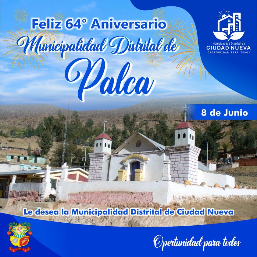 La Municipalidad Distrital de Ciudad Nueva saluda a la Municipalidad Distrital de Palca - Tacna por celebrarse el 64° aniversario de su Creación Política.